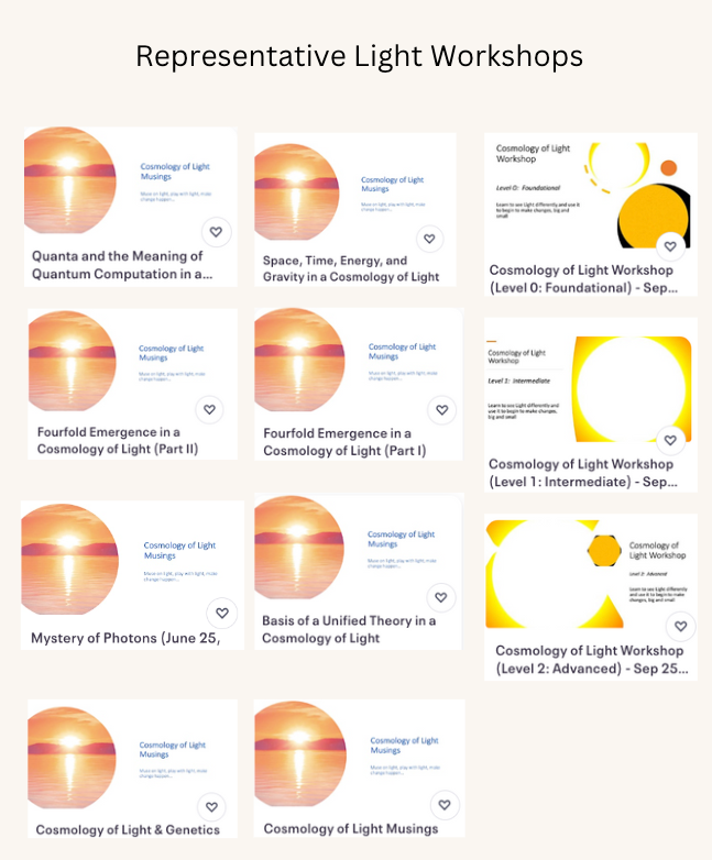 Levels 0–2: Foundational to Advanced workshops to deepen your understanding of light’s transformative power.